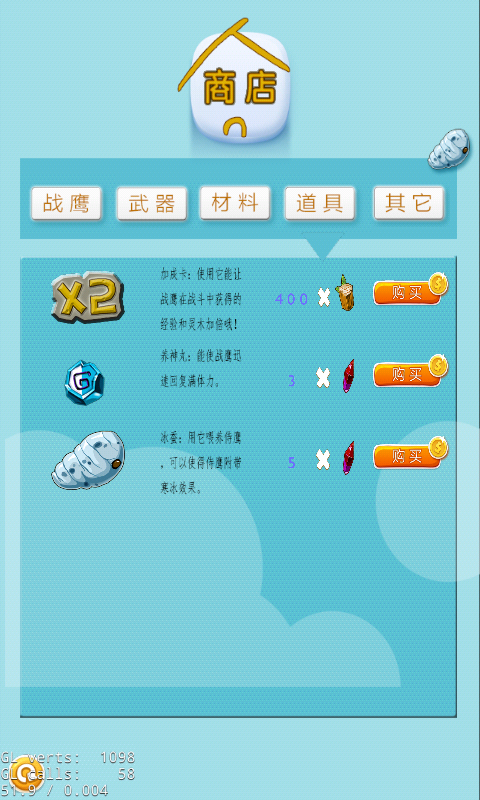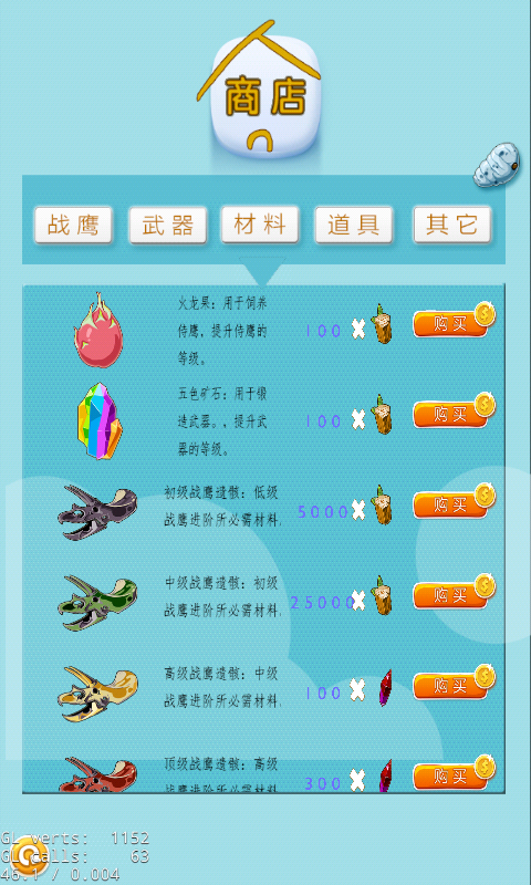 随着经验的积累,力量、敏捷等技能随之提升,你可以得到更好的战鹰!