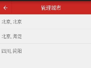 2.在原有的天气预报项目中加入了多城市管理,可以添加多个城市,可以删除城市,然后在主页面中可以左右滑动来切换不同的城市;