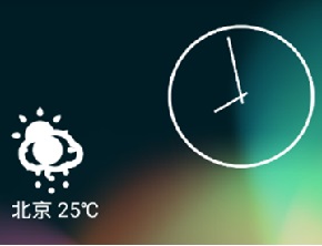 3.在桌面上添加了widget图标,可以查看当前城市的当前温度情况。并没半小时更新一次,也可进行点击进入程序。进入程序后重新选择城市,则会对桌面的本Appwidget进行更新,更新为当前城市及天气情况;