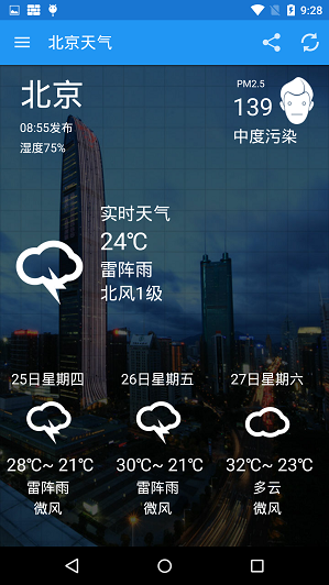 加入了天气预报分享功能,可以通过蓝牙、google等方式分享